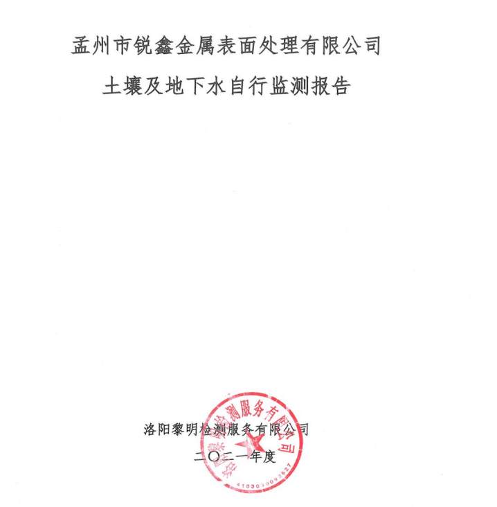 孟州市銳鑫金屬表面處理有限公司2021年度土壤和地下水自行監測報告公示