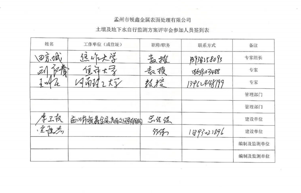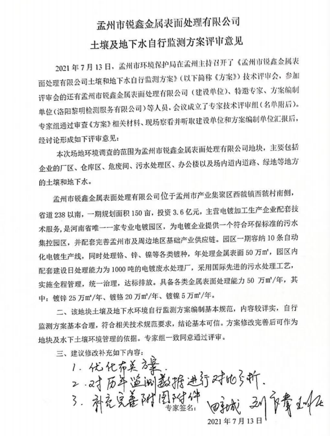 孟州市銳鑫金屬表面處理有限公司土壤及地下水自行監測報告